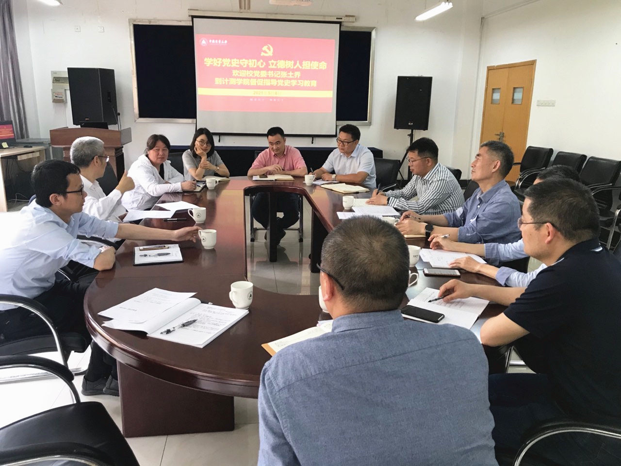 5月8日下午,学校党委书记张土乔、党办校办主任陈剑波到计测学院指导党史学习教育。计测学院召开专题工作汇报会,学院党政领导班子、党委委员、教工党支部书记、研究所所长和党政办公室主任等参加会议。