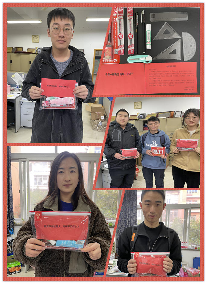 学院为同学们准备的助力包含物质和精神的双重鼓励:文具包和温馨提醒。这些物资将伴随同学们一起抓紧备考,一起进入考场,让计测学院的学风考风贯穿到他们考研的全过程。今年,计测学院考研报名率依然保持在高位,较好地延续了学院良好的考研传统。在这距离2022年研究生考试不到一个月的时间里,考研助力包将有助于同学们珍惜备考时间,树立备考信心。